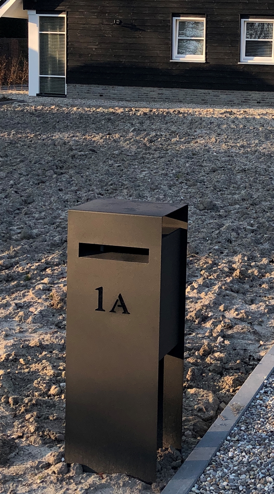 Uitlaseren van naam en nummer: Het is ook mogelijk om uw naam en/of huisnummer uit de brievenbus te laten laseren. Deze optie zal de levertijd wel verlengen met zo’n 6 á 8 weken. Voor dat de brievenbus geproduceerd wordt zal er na bestelling een werktekening overlegd worden, wanneer deze is goedgekeurd zal de brievenbus in productie gaan.
