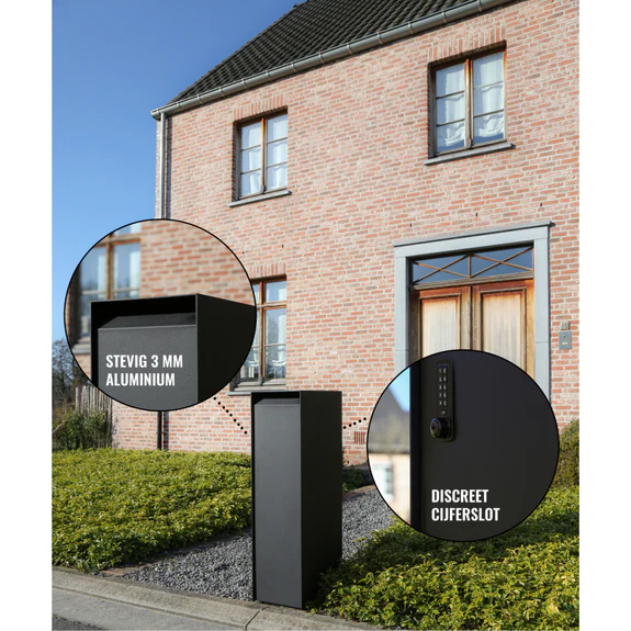Het deurtje van de eSafe pakketbrievenbus NEXUS is voorzien van een discreet cijferslot dat zich achteraan bevindt. Dit zorgt ervoor dat niets de strakke look van de pakketbrievenbus in de weg staat. Je pakketten en brieven blijven veilig en privé, terwijl het geheel er elegant uitziet.