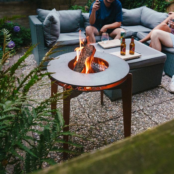 Zonder de bakplaat ring is de FORNO COSA BAKPLAAT een stijlvolle vuurschaal op poten. De ronde vormen lenen zich goed om met familie en vrienden te genieten van de warmte die de COSA je geeft. Een veelzijdige en fijne warmtebron dus.