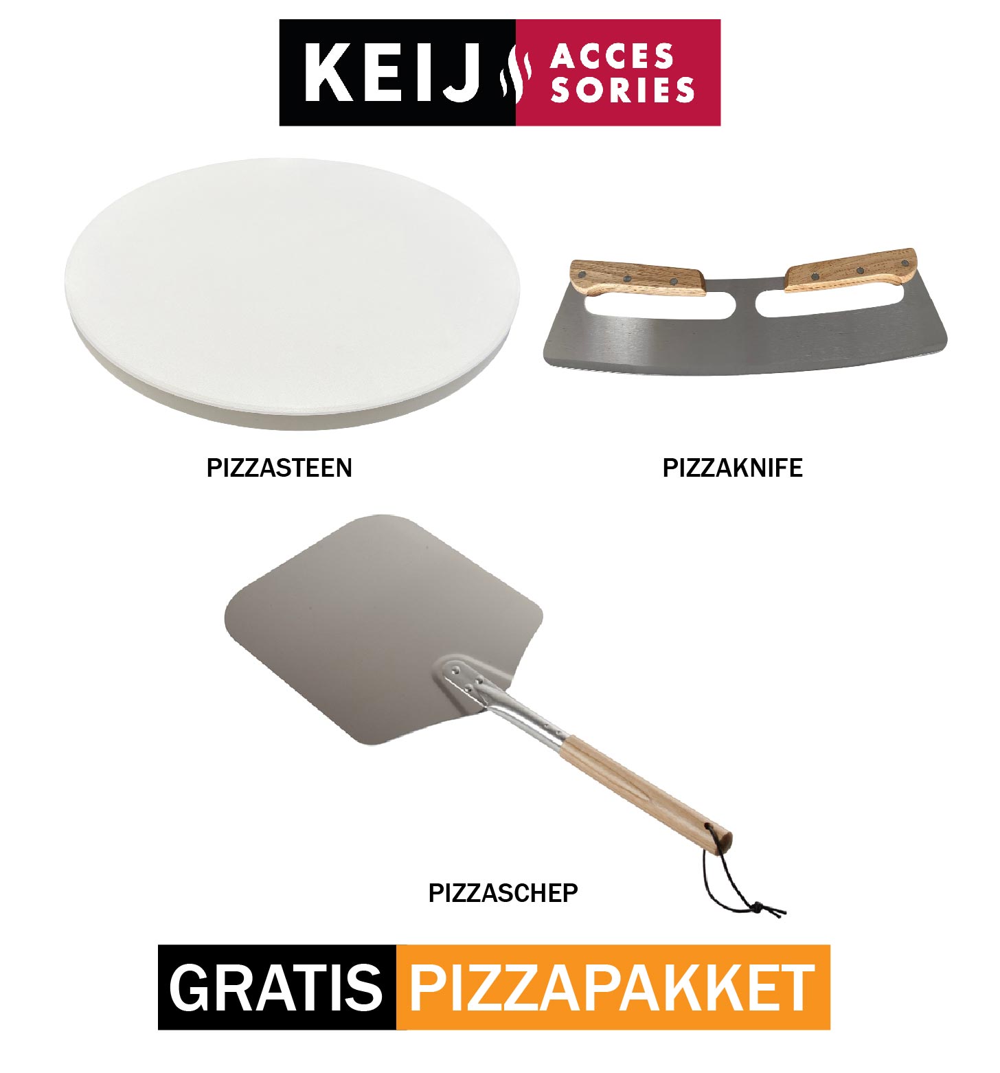 Inclusief: pizzasteen (geschikt voor L/XL modellen), pizzaknife en pizzaschep, jouw complete set voor échte steenovenpizza’s.