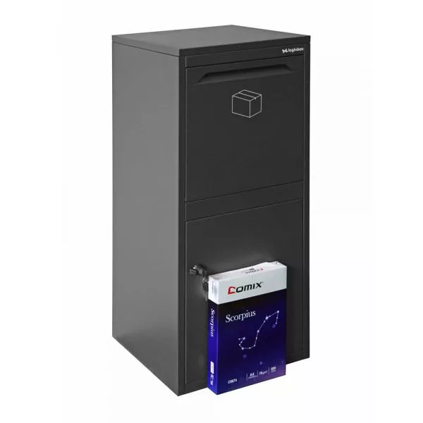 De Logixbox Frontbox Deluxe pakketbrievenbus heeft een royale capaciteit van 158 liter en kan pakketten tot 35 x 40 x 32,5 cm moeiteloos opvangen. Dankzij de ruime inwerpopening en de efficiënte schuifconstructie komen pakketten veilig in het afgesloten compartiment terecht. De toegang tot je bezorgingen is eenvoudig via het afsluitbare deurtje aan de voorzijde, zodat je niet afhankelijk bent van buren of afhaalpunten. Verkrijgbaar in de stijlvolle kleuren Stardust Black en Graphitgrey, zodat deze perfect aansluit bij jouw tuin, oprit of gevel.