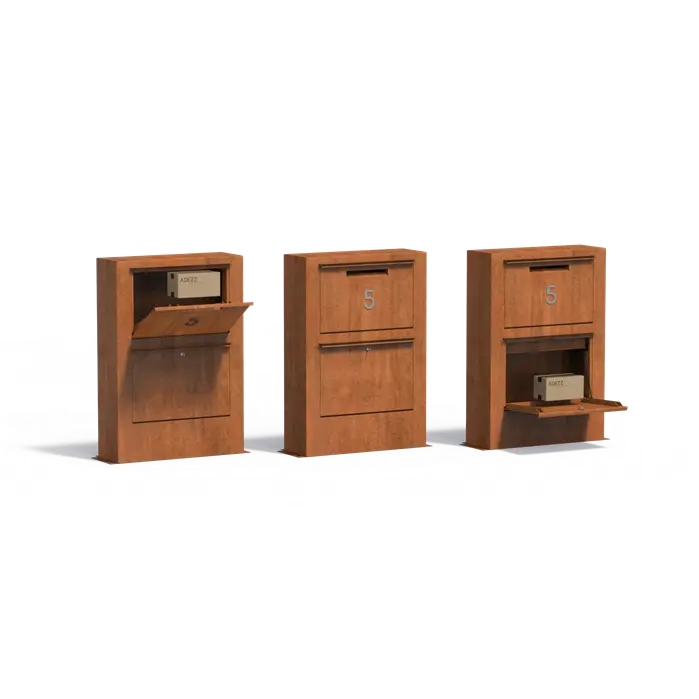 Cortenstaal is een metaallegering bestaande uit ijzer, met toevoegingen zoals koper, fosfor, silicium, nikkel, en chroom. Wanneer het materiaal wordt blootgesteld aan de buitenlucht, ontstaat er een beschermende roestlaag, die verdere corrosie voorkomt. Dit waarborgt een lange levensduur voor de brievenbus en behoudt zijn charme door de jaren heen.