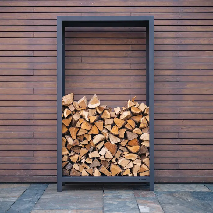 Sfeervol én praktisch. Met de stalen houtopslag LOGG maak jij je houtopslag tot een design element in de tuin. De LOGG is in verschillende afmetingen te bestellen en hittebestendig. Daarom is deze houtopslag ook direct naast je buitenhaard te plaatsen. Zo maak jij een avond rond het vuur nog gezelliger. De zwarte coating geeft het geheel een tijdloze en rustige uitstraling.