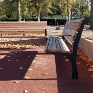 De banken zijn gemaakt van een mooie combinatie uit Garapa hout en gepoedercoat staal.