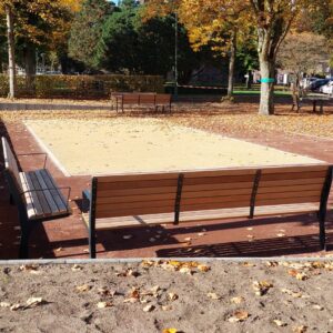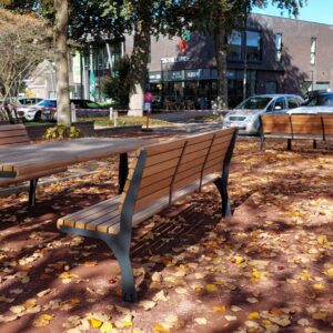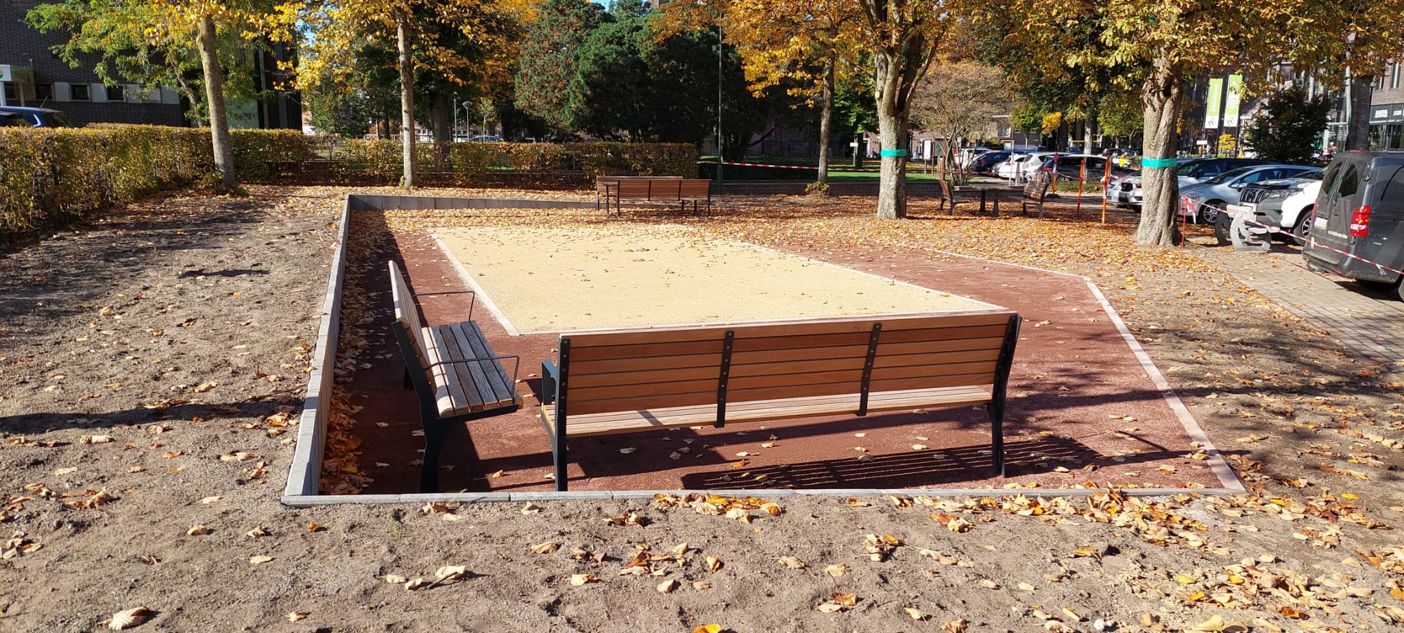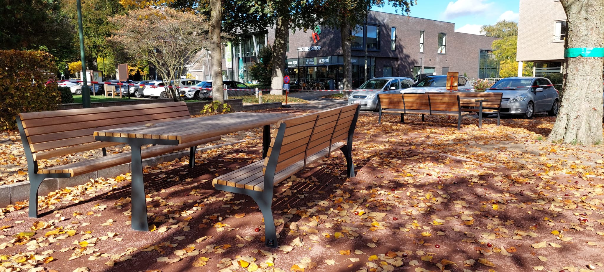 Voor de serviceflat de Lier Hamont-achel | Straatmeubilair geleverd. Het straatmeubilair bestaande uit twee picknick sets en twee zitbanken zijn te bewonderen bij de petanquebaan aan serviceflat de Lier te Achel.